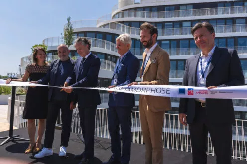 Ce jeudi 19 juin, Michel et François Giboire, Olivier Biancarelli et Christophe Béchu, maire d’Angers, ont inauguré cet ambitieux programme immobilier situé au cœur du quartier Saint-Serge à Angers, en présence de nombreuses personnalités locales et des équipes du projet.